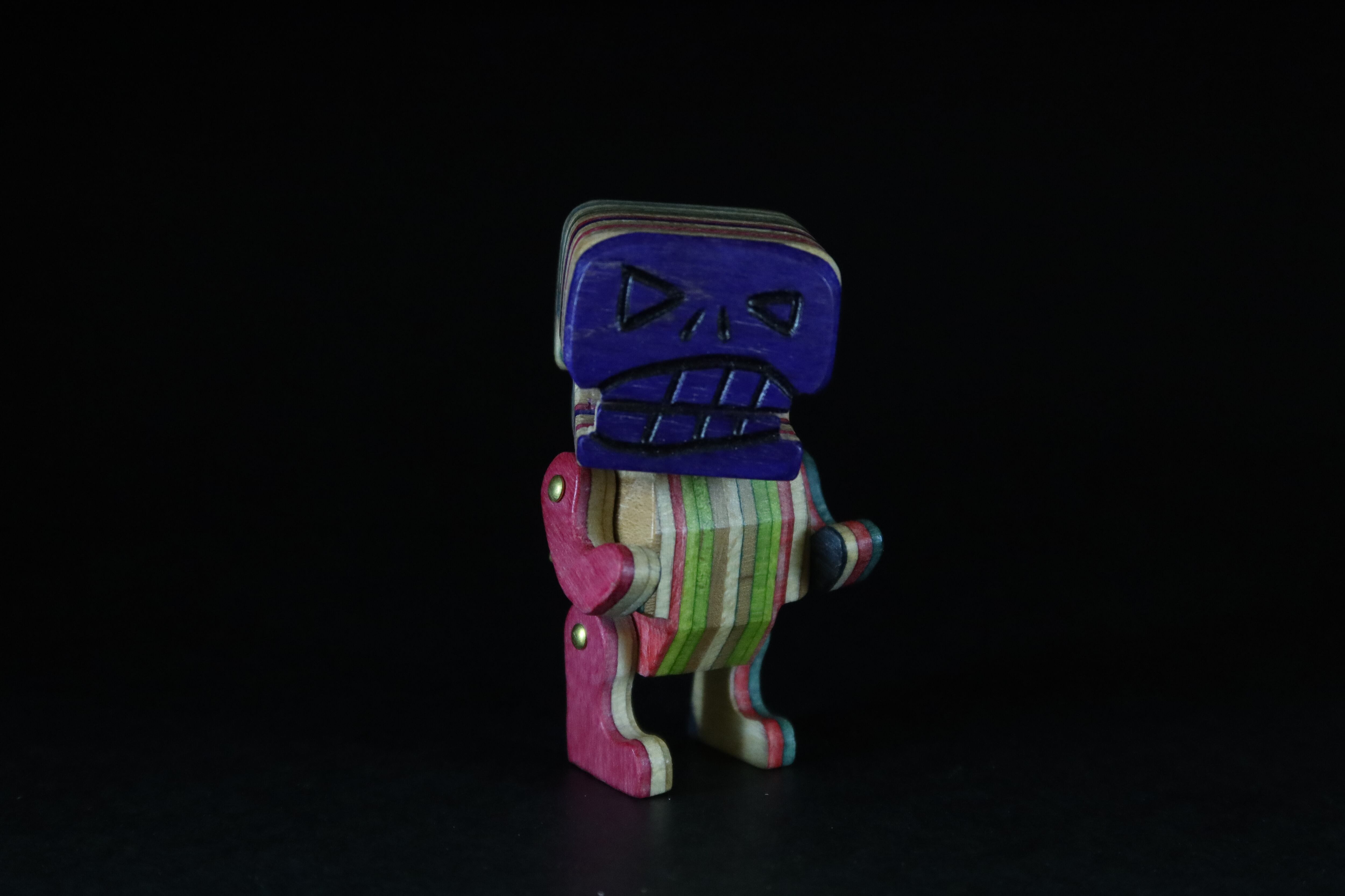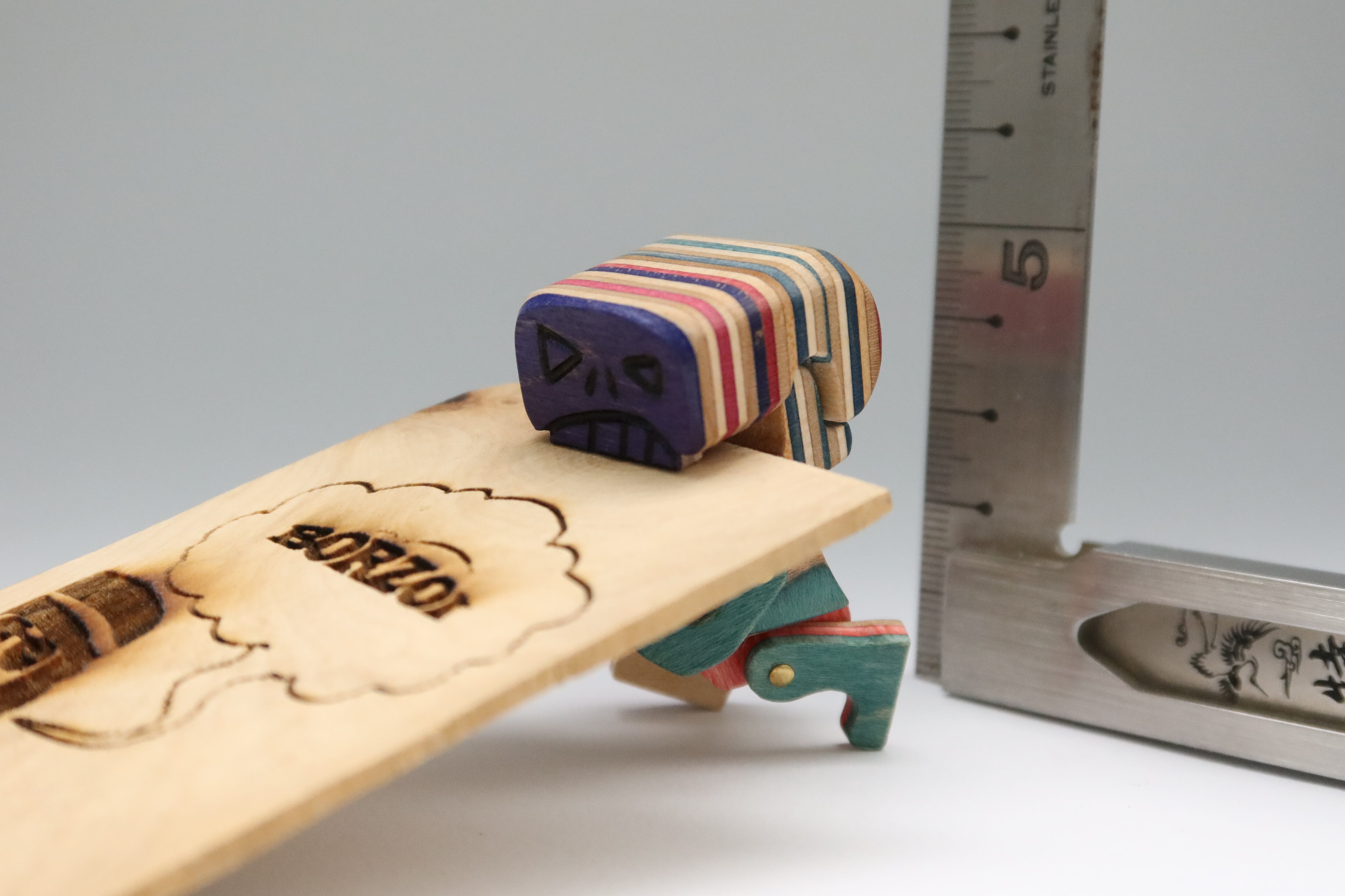 素材:リサイクルスケートボード(メープル合板)*派手な色相はスケートボードメーカーが入れた浸漬の着色・真鍮など