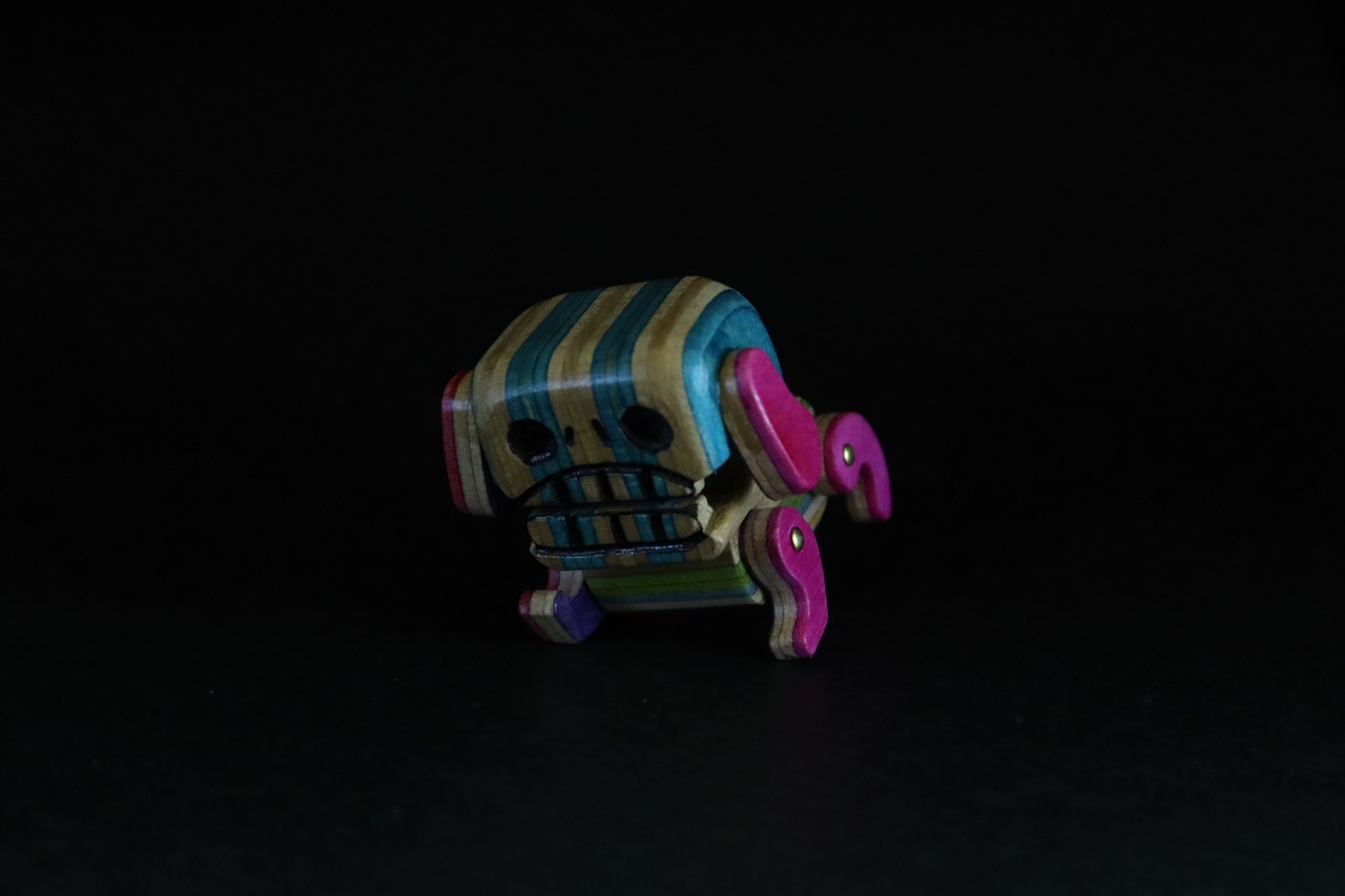 素材:リサイクルスケートボード(メープル合板)*派手な色相はスケートボードメーカーが入れた浸漬の着色・真鍮など