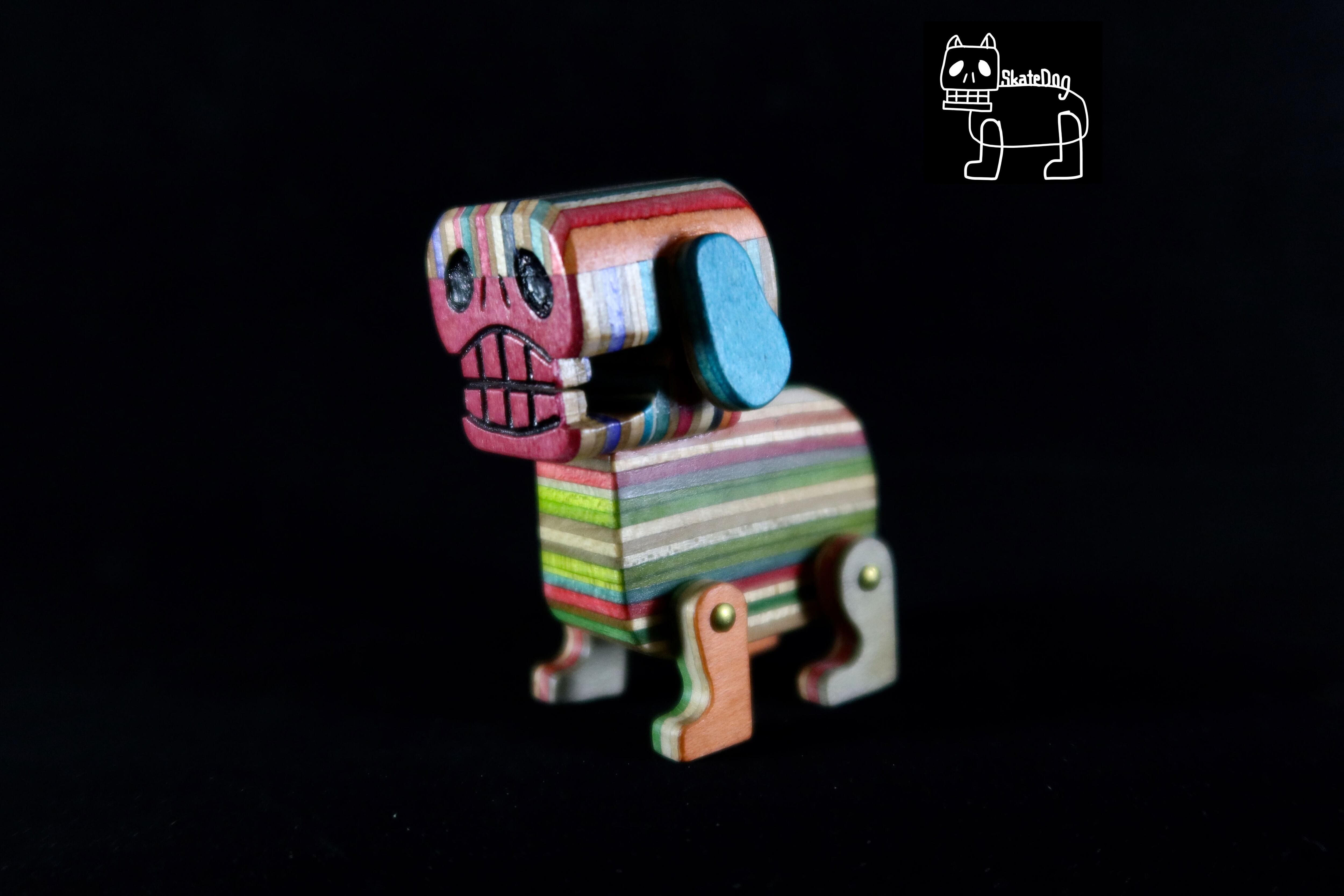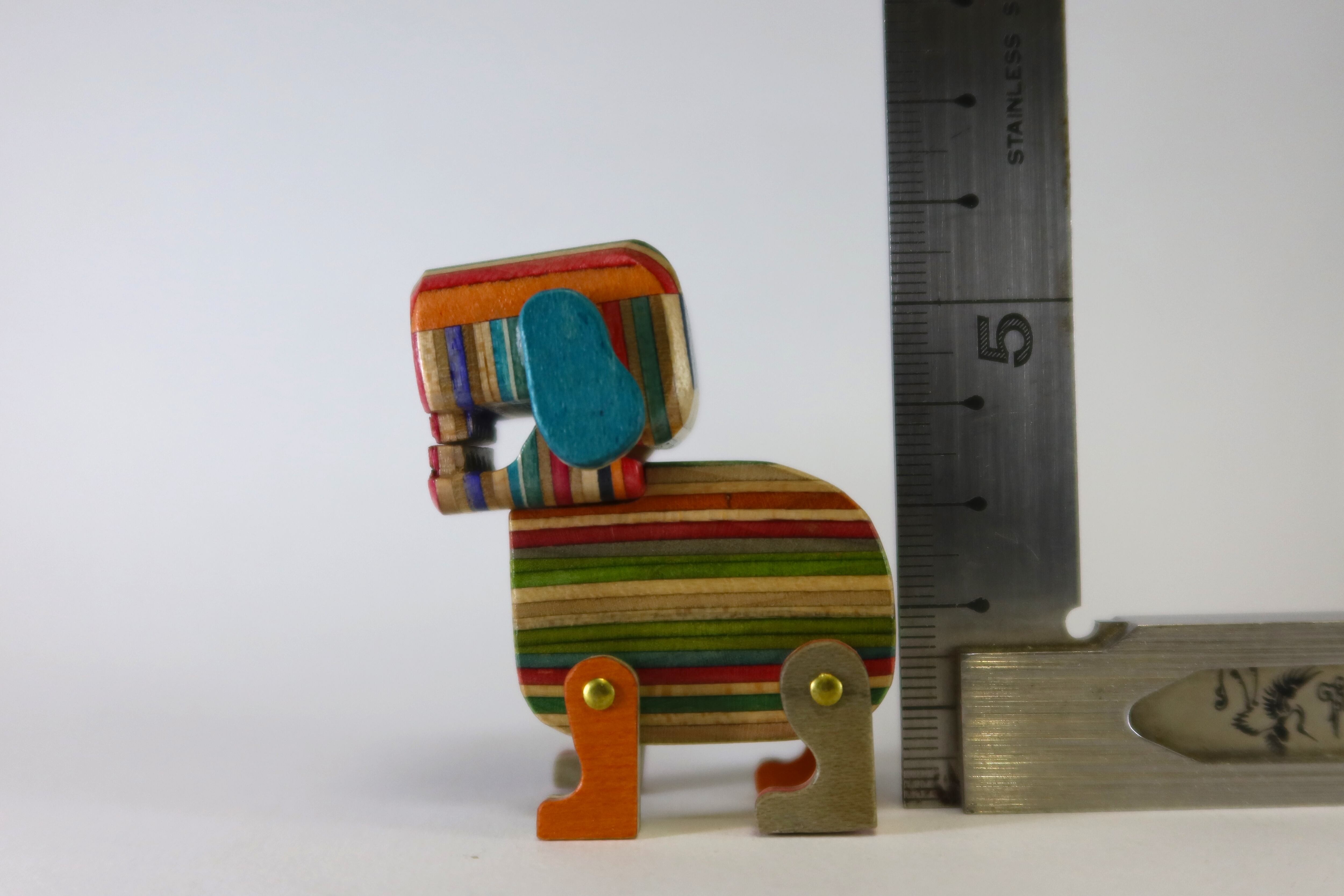 素材:リサイクルスケートボード(メープル合板)*派手な色相はスケートボードメーカーが入れた浸漬の着色・真鍮など